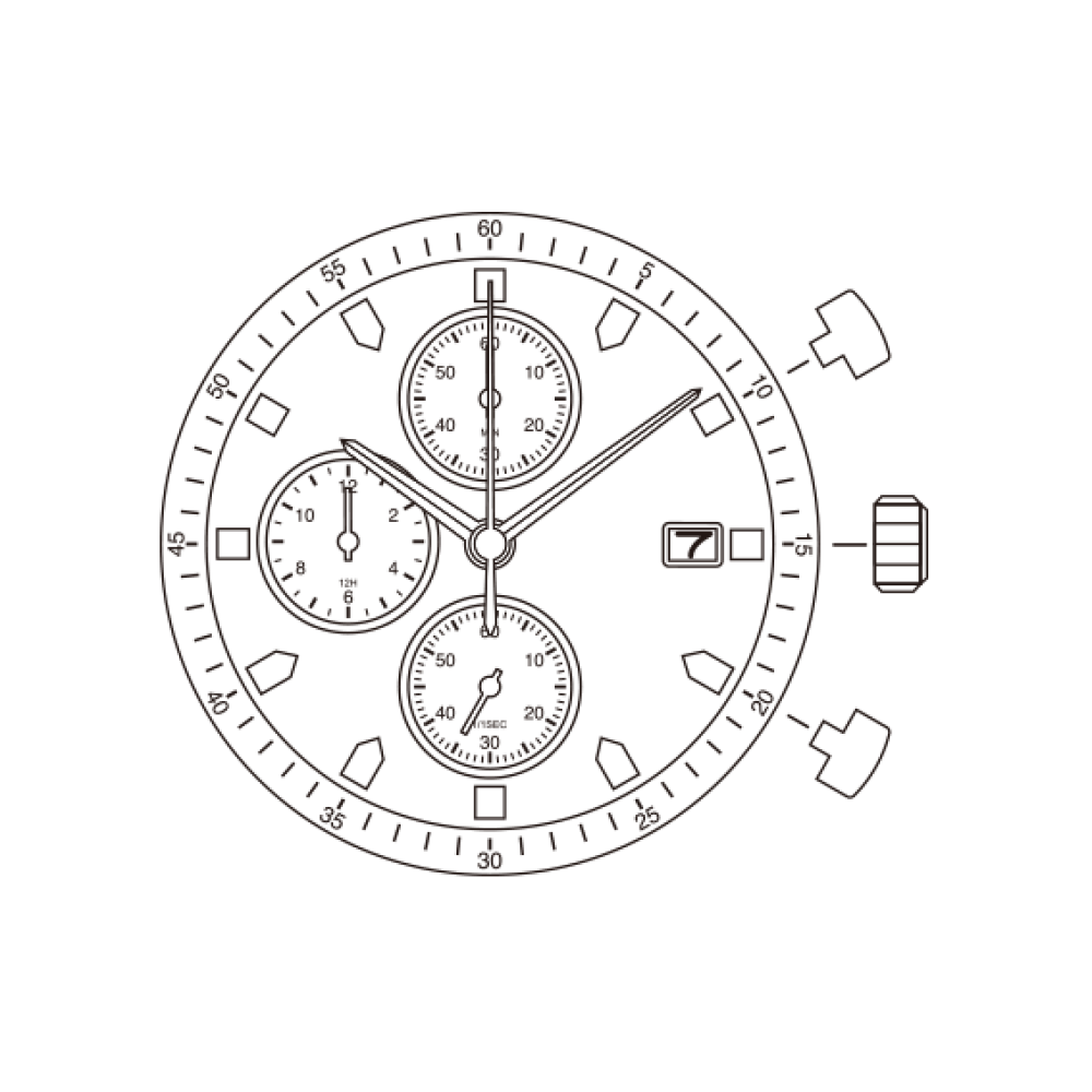 Mvt. Miyota OS10 13 1/2''' SC DATE3 3EYES CHR Quartz (399)