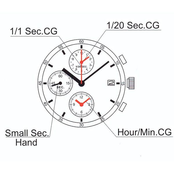 MOVIMENTO SKM YM92 A 12''' CHR 3EYES DATE 3 1/20SEC CAL Quartz