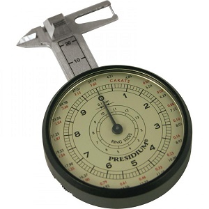 Dispositivo analogico di facile utilizzo per la misurazione di pietre preziose rotonde a taglio brillante con una precisione di 0,05 mm. La scala di facile lettura consente di misurare contemporaneamente millimetri e carati.